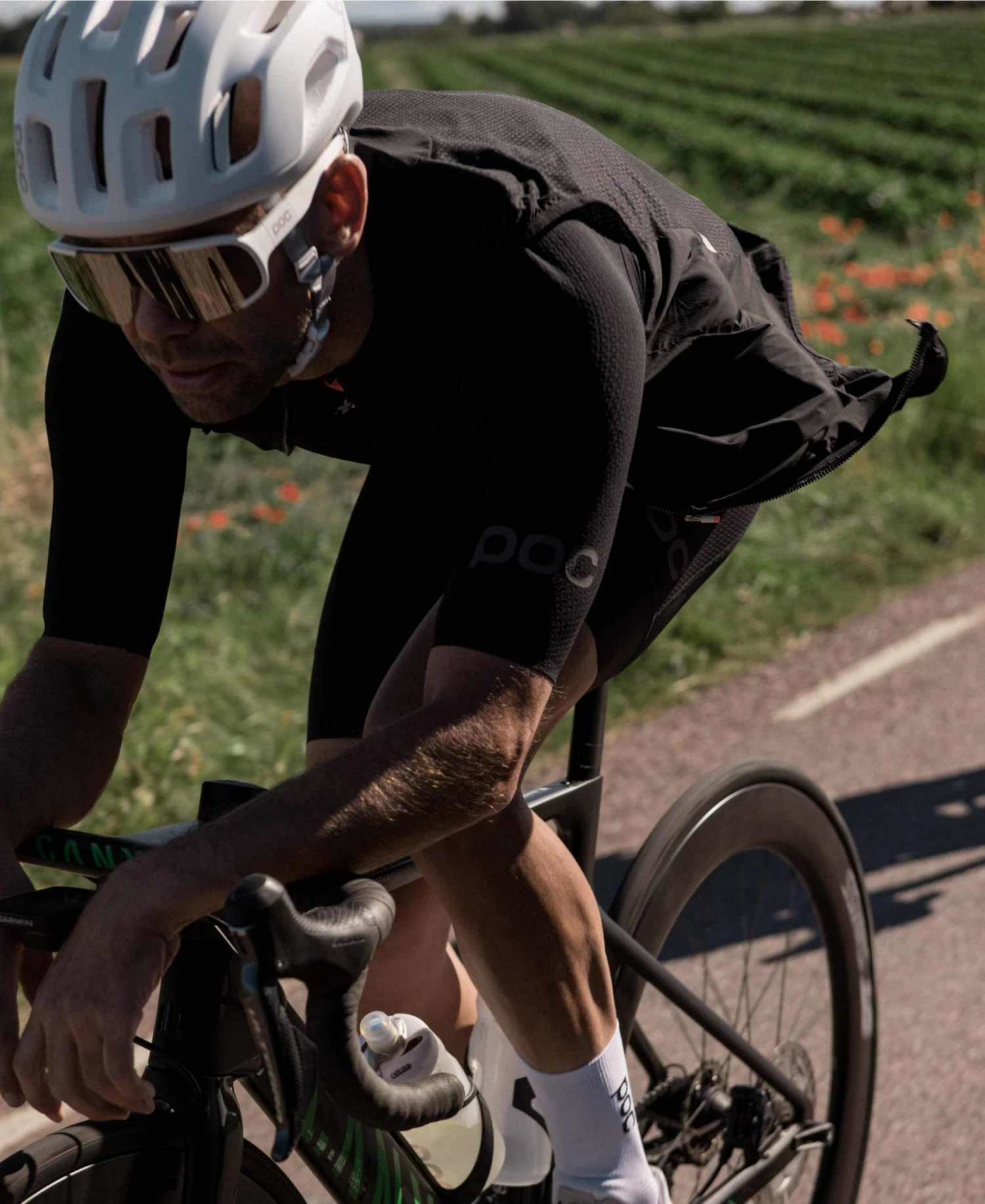 Two-way zipper makes it easy to control ventilation and to reach jersey pockets underneath.
