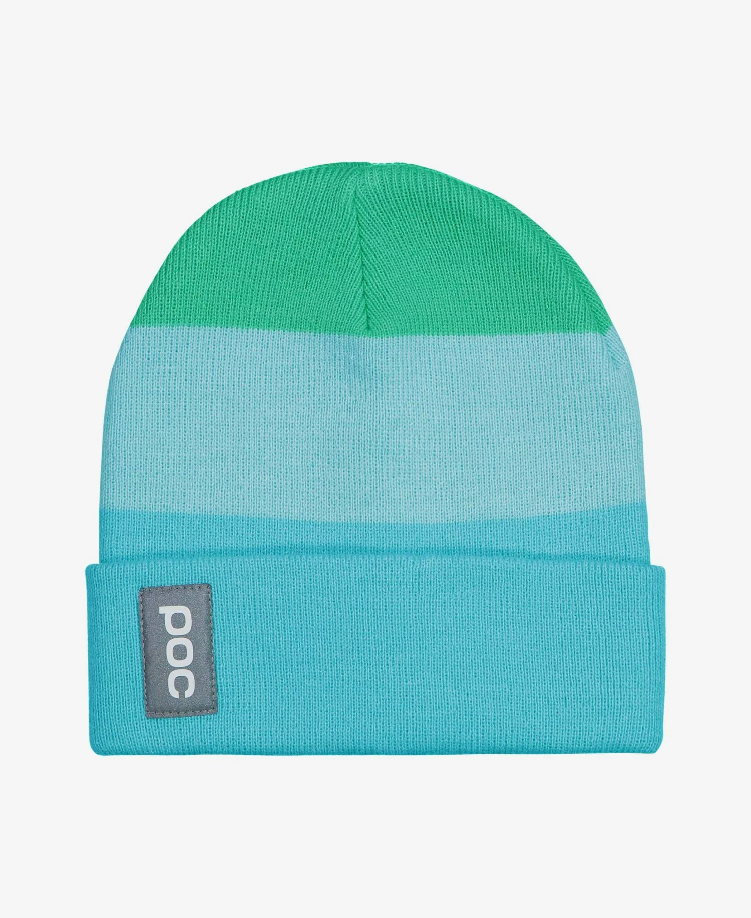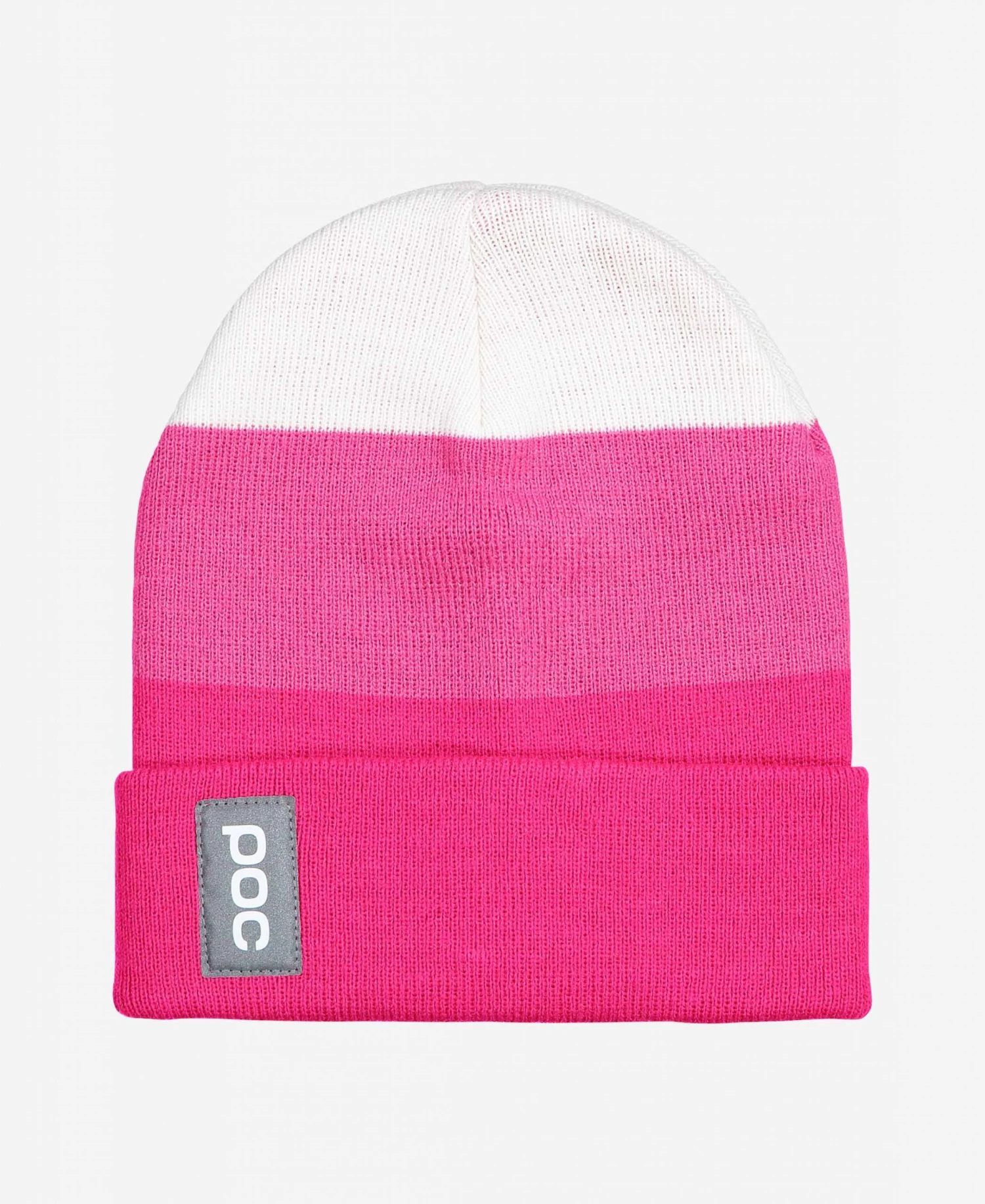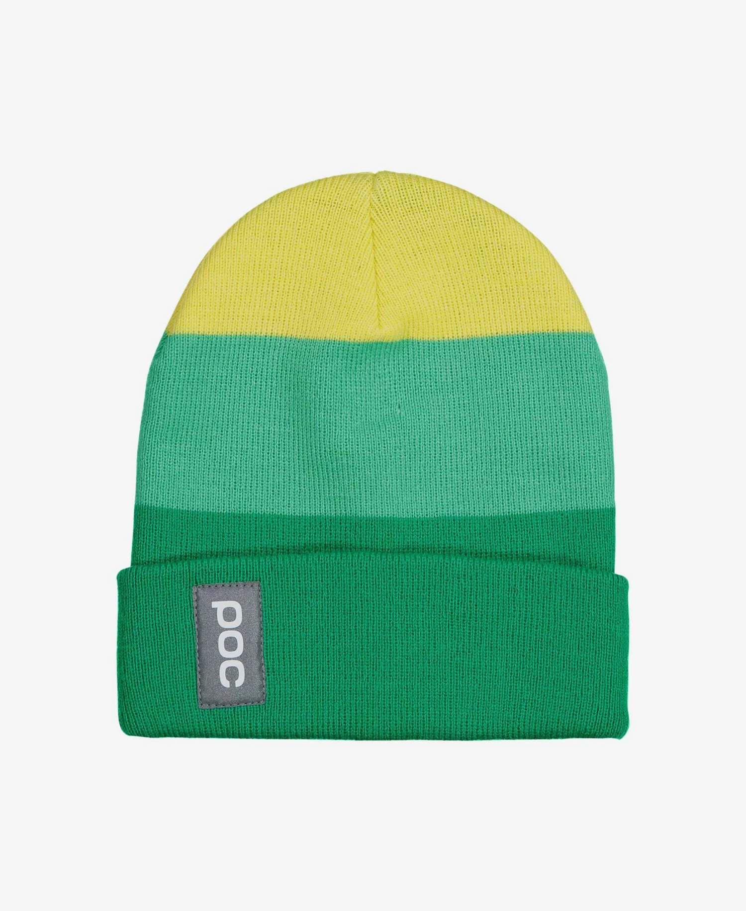 A double-knit semi-loose fit beanie with striped color blocks. A reflective POC label on the folded edge enhances visibility.